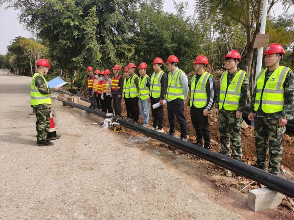 在管線施工現(xiàn)場(chǎng),新入職的大學(xué)生黃登立根據(jù)安全文明施工標(biāo)準(zhǔn)正在檢查督促進(jìn)入施工區(qū)的每一名工人。“阿姨,進(jìn)入施工現(xiàn)場(chǎng)要正確佩戴好安全帽,扣好帽帶,穿好反光背心,路邊來往車輛較多,要多注意安全。”看見進(jìn)入施工區(qū)的工人沒有戴好安全帽,他一個(gè)個(gè)的提醒糾正。