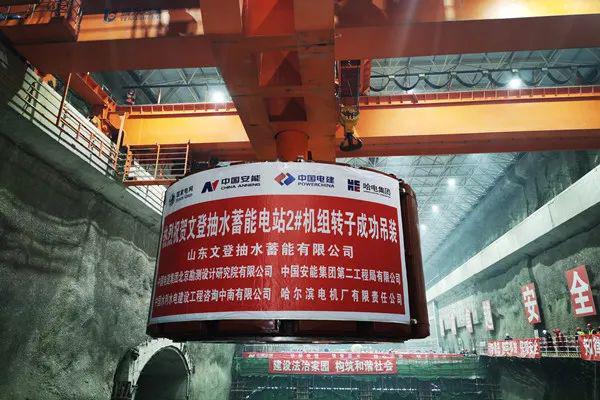 6月7日,歷時99天的現場疊片組裝和試驗,由中國安能二局承建的山東****抽水蓄能電站—國網新源山東文登抽水蓄能電站2號機組轉子吊裝成功,標志著2號機組正式進入總裝階段,為按期投產發電奠定了堅實的基礎。