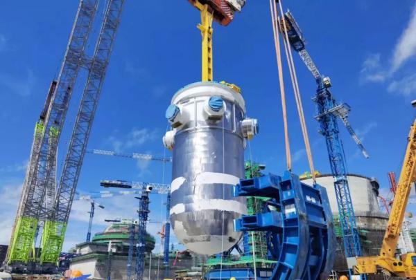 8月9日,我國自主三代核電華龍一號批量化工程——中核集團漳州核電2號機組反應堆壓力容器順利吊裝就位。這是該機組繼三臺蒸汽發生器吊裝成功之后,主設備預引入工作再次取得的重大進展,為后續內穹頂吊裝及主管道焊接創造了先決條件。