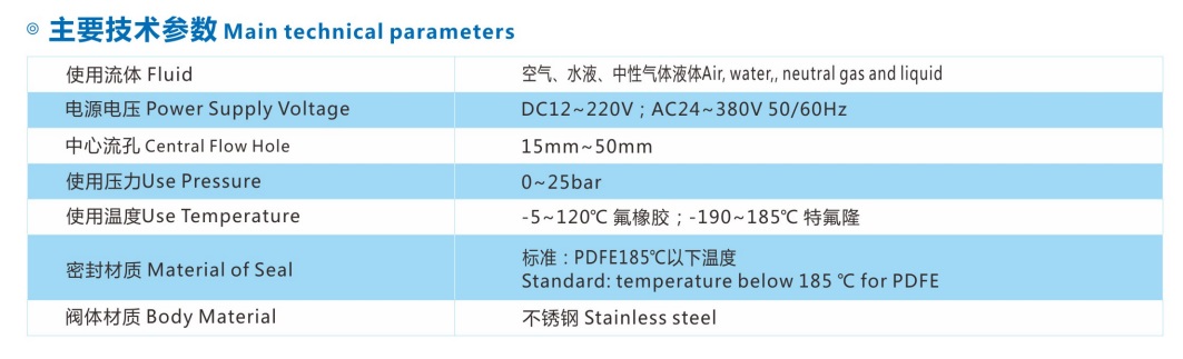 高壓電磁閥主要技術參數