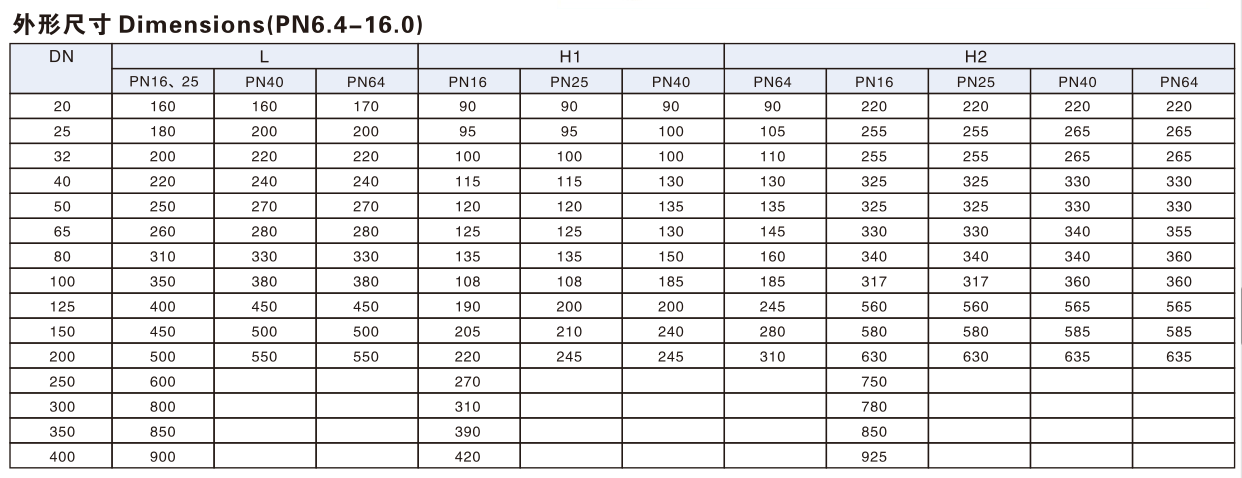 公稱壓力Nominal pressure:1.6~6.4MPa